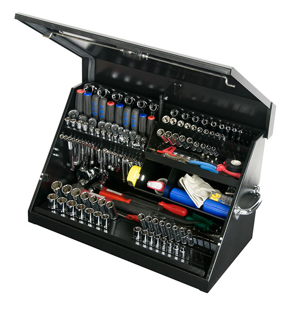 Top chest holds both metric and S.A.E. tools